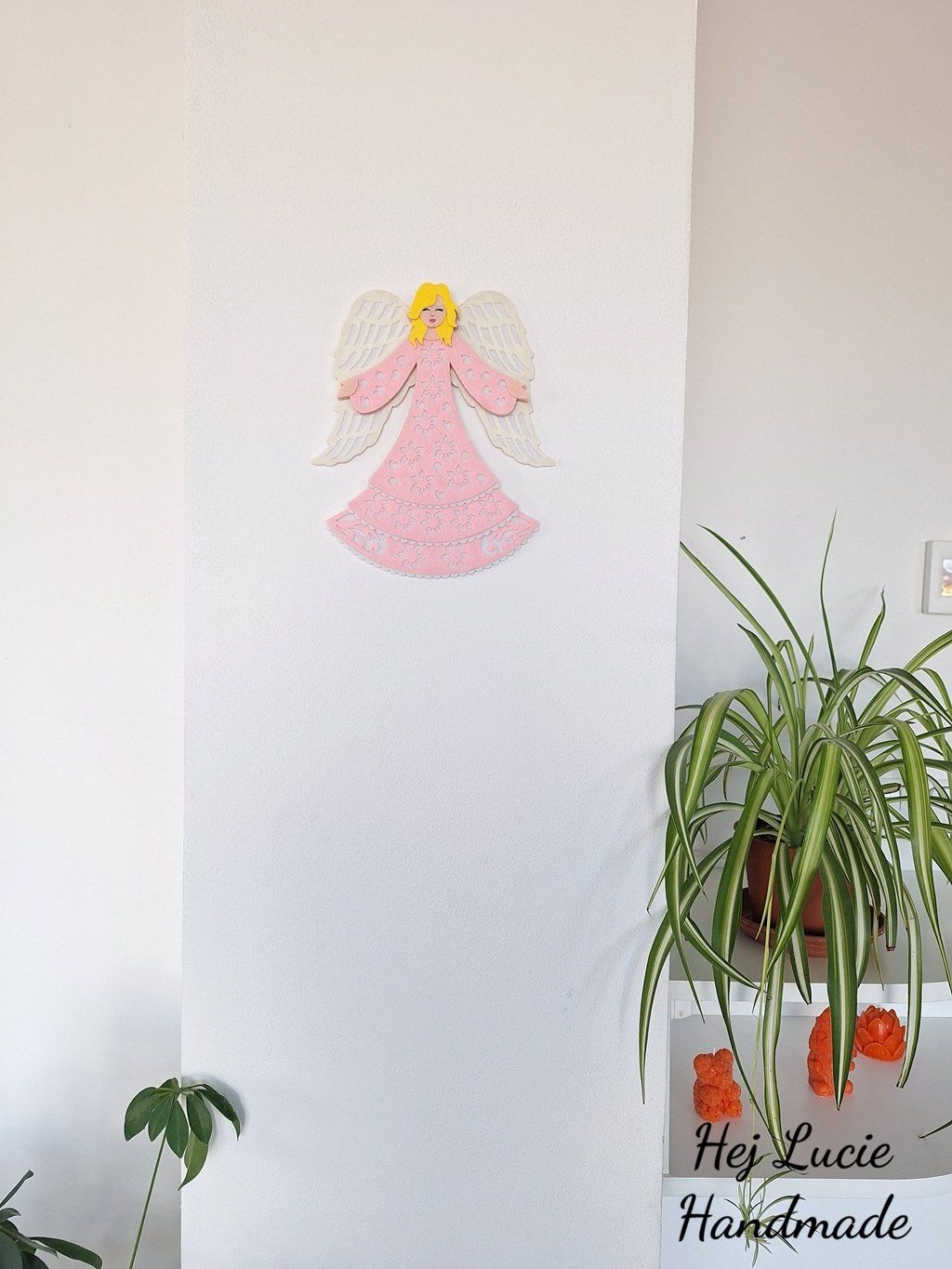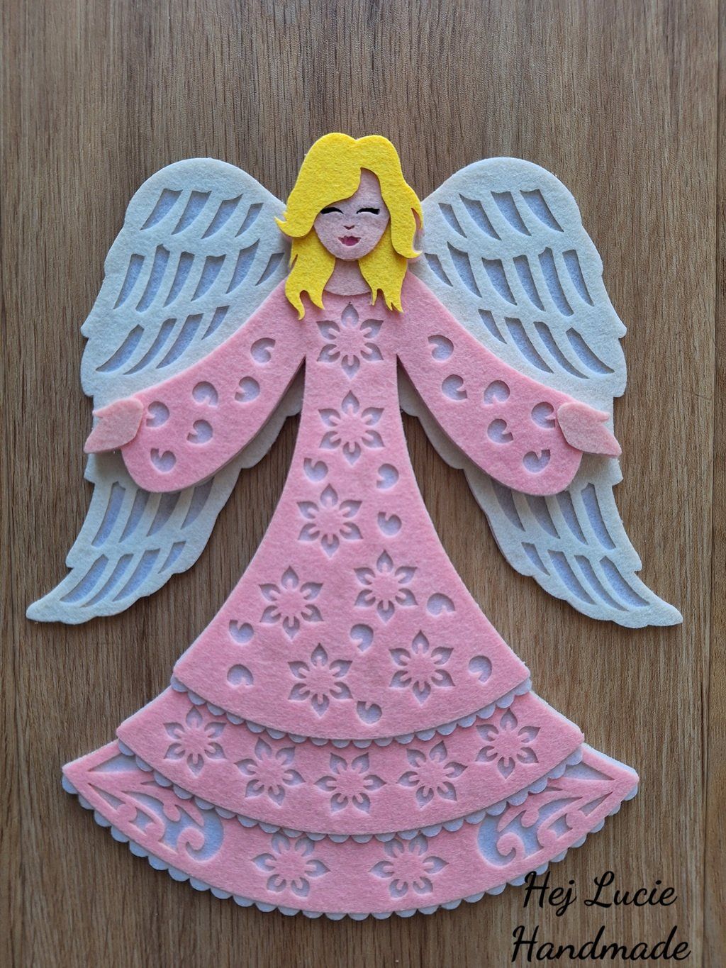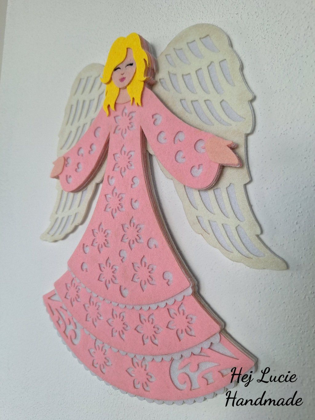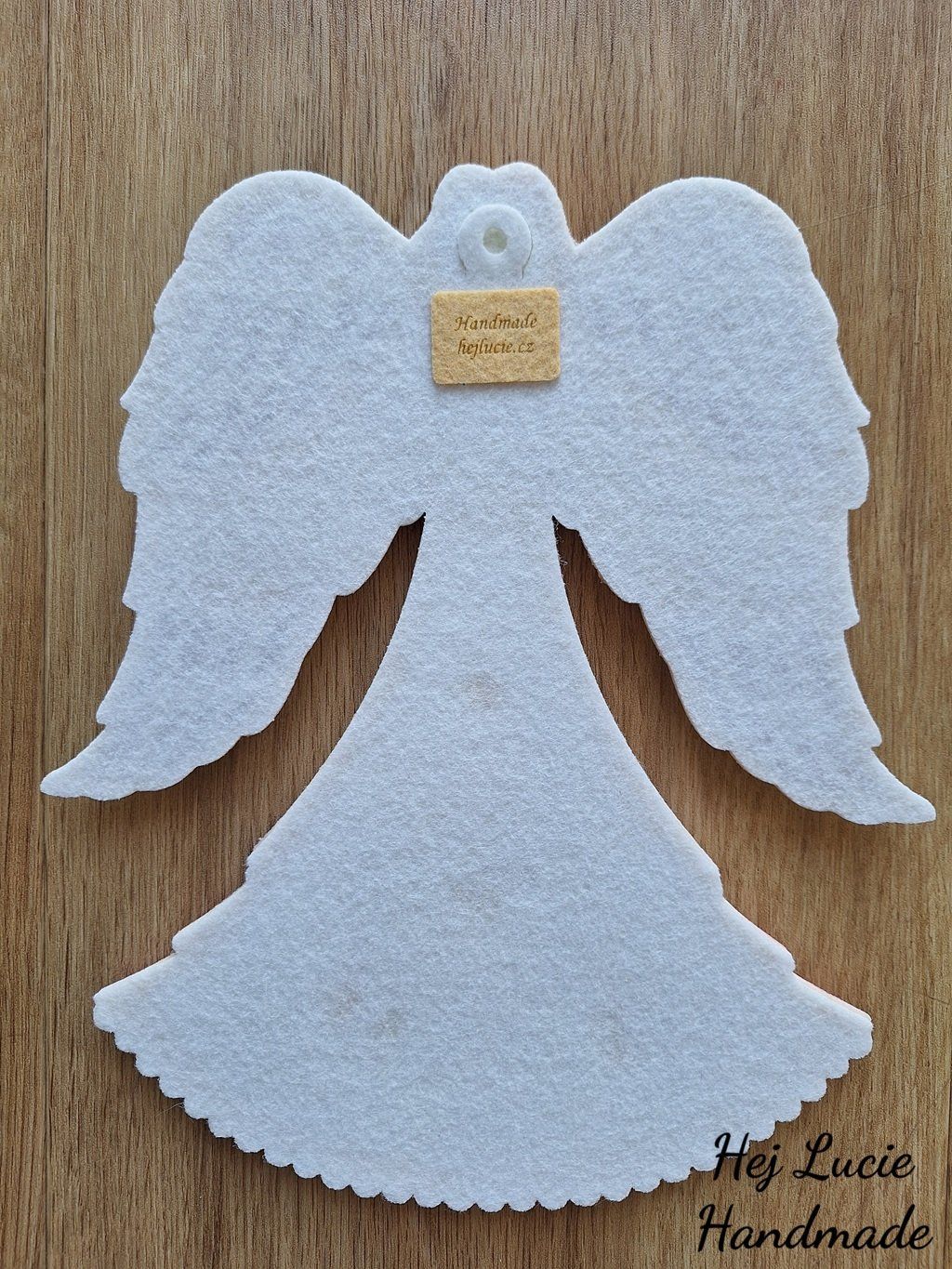 Andělka je ručně vyrobená z několika vrstev filcu nalepených na sobě, což působí 3D dojmem. Andělka je opatřena poutkem na zavěšení umístěným na zadní straně, poutko není po zavěšení na zeď viditelné.