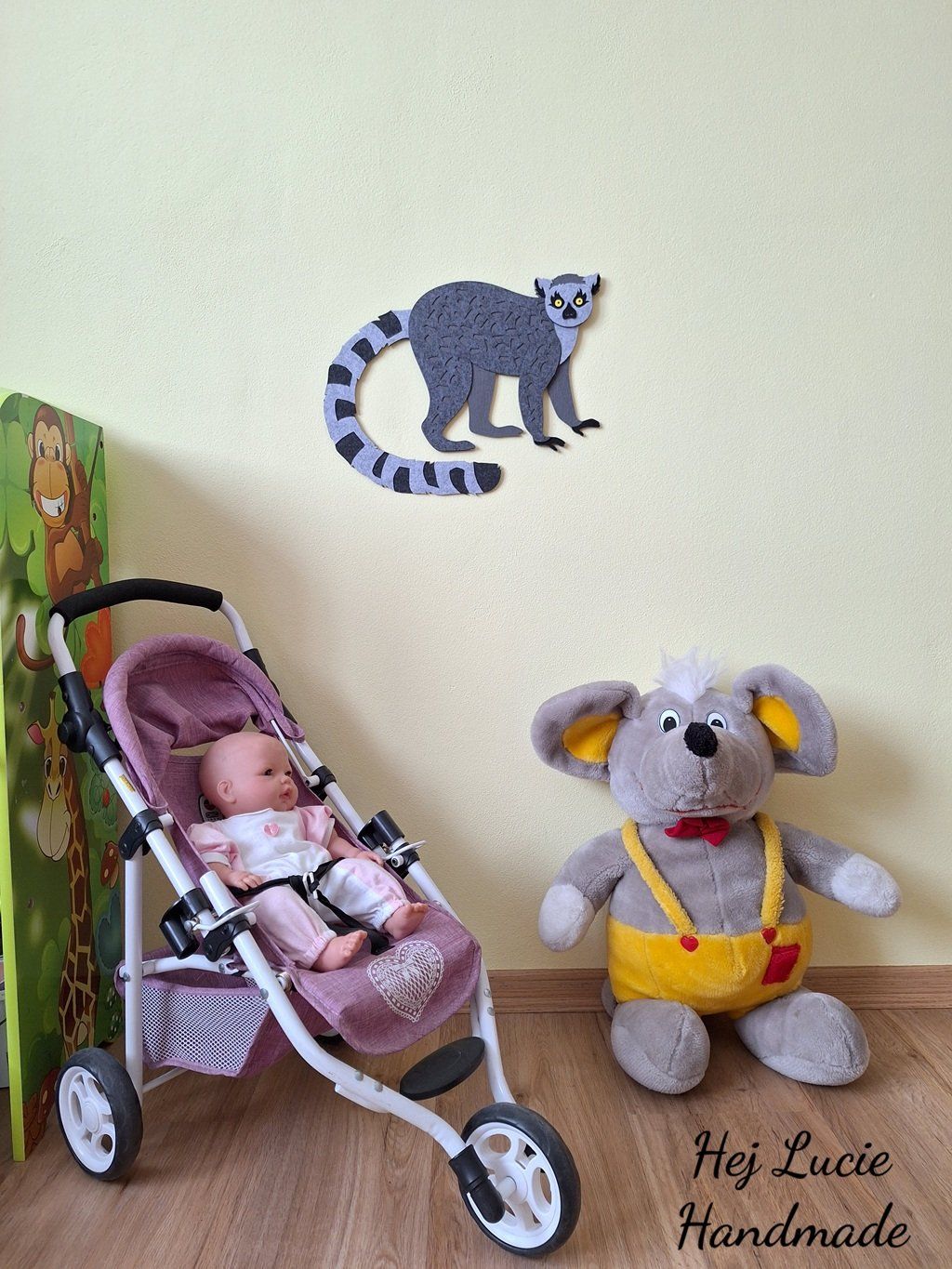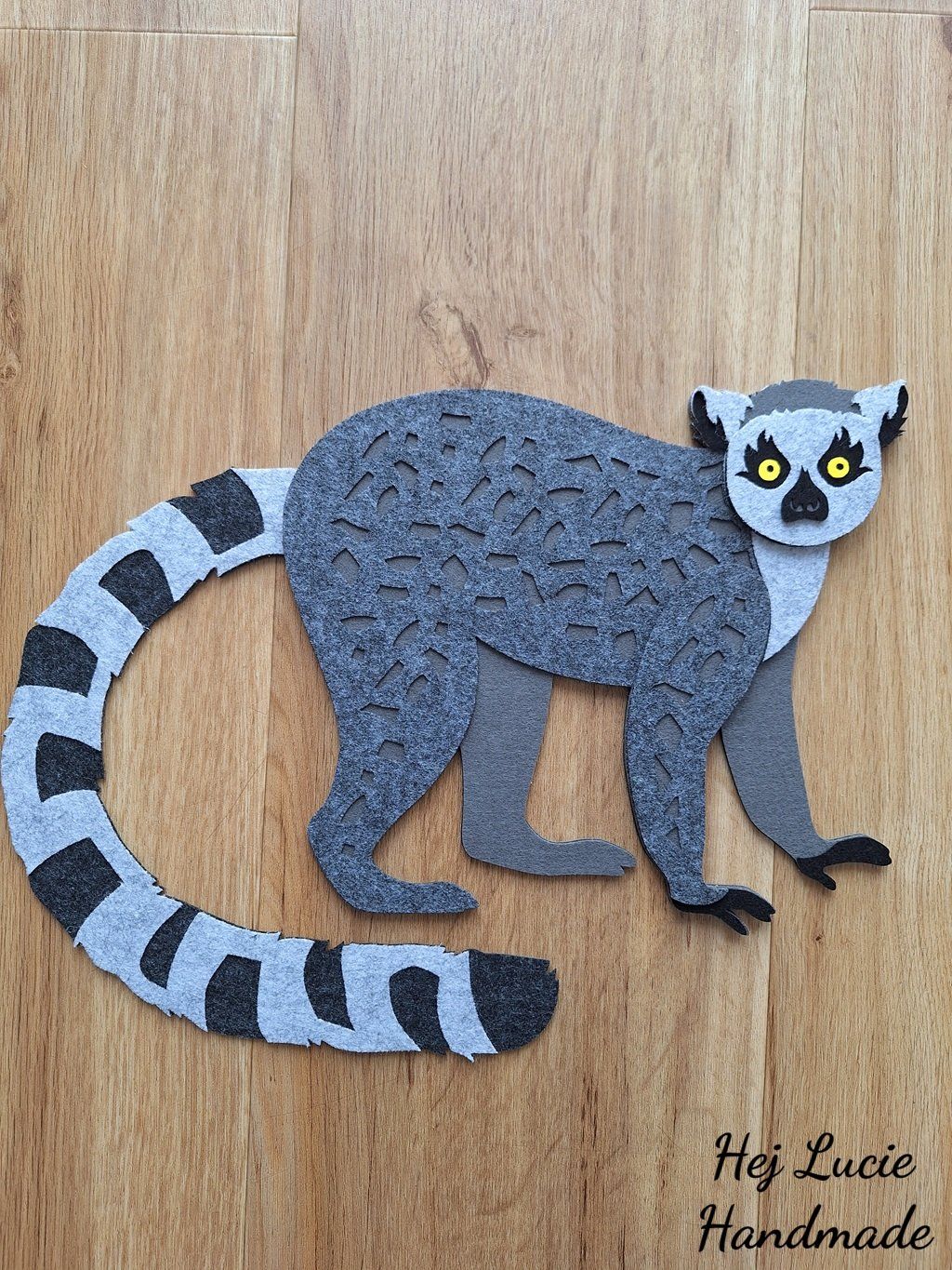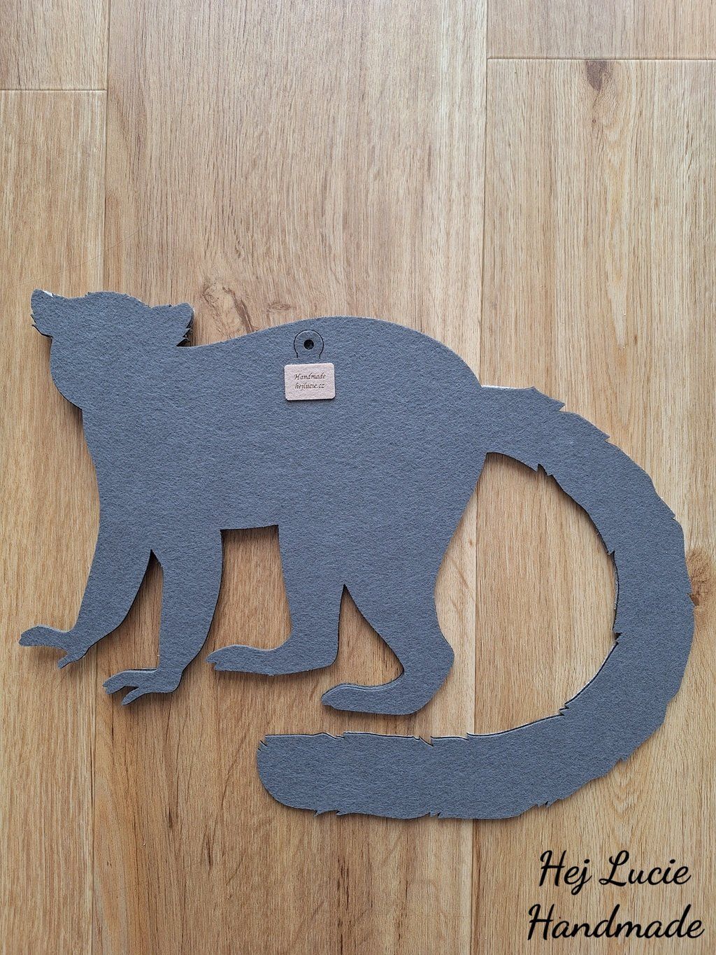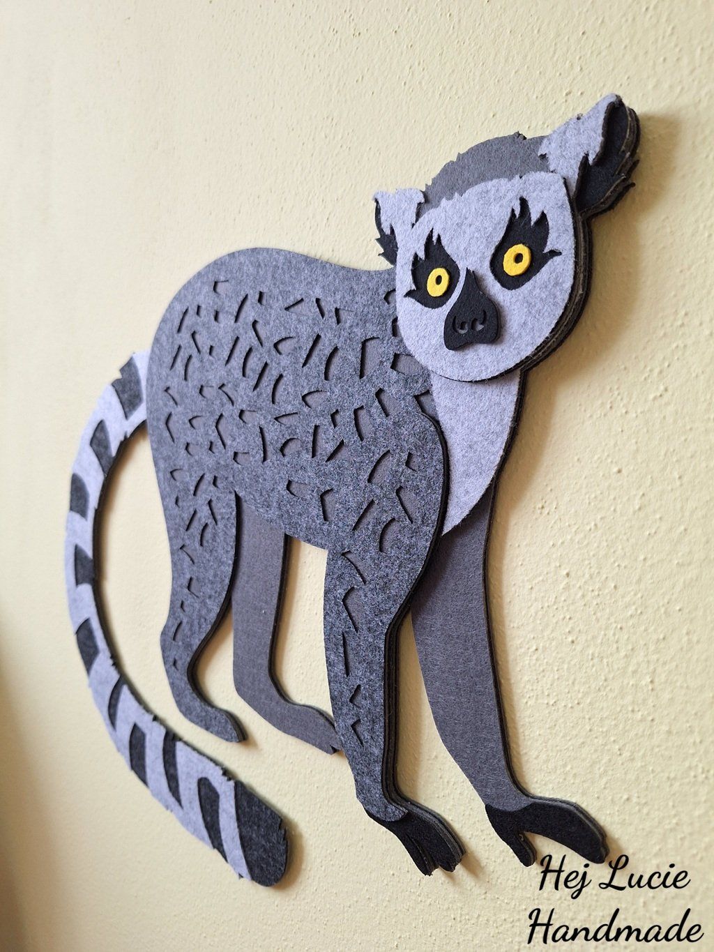 Lemur je ručně vyrobený z několika vrstev filcu nalepených na sobě, což působí 3D dojmem. Lemur je opatřen poutkem na zavěšení umístěným na zadní straně, poutko není po zavěšení na zeď viditelné.