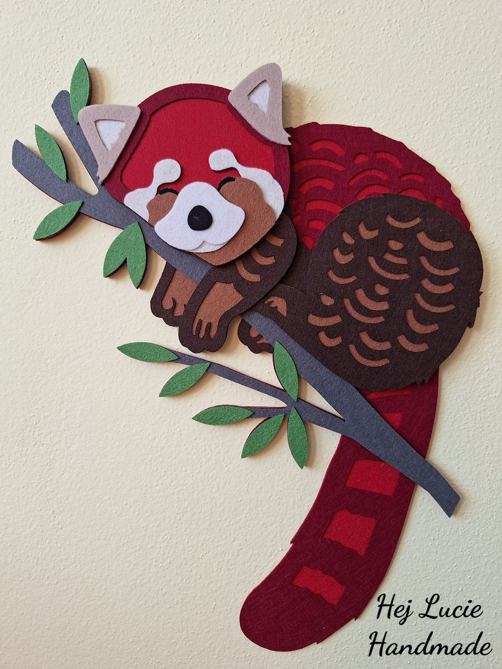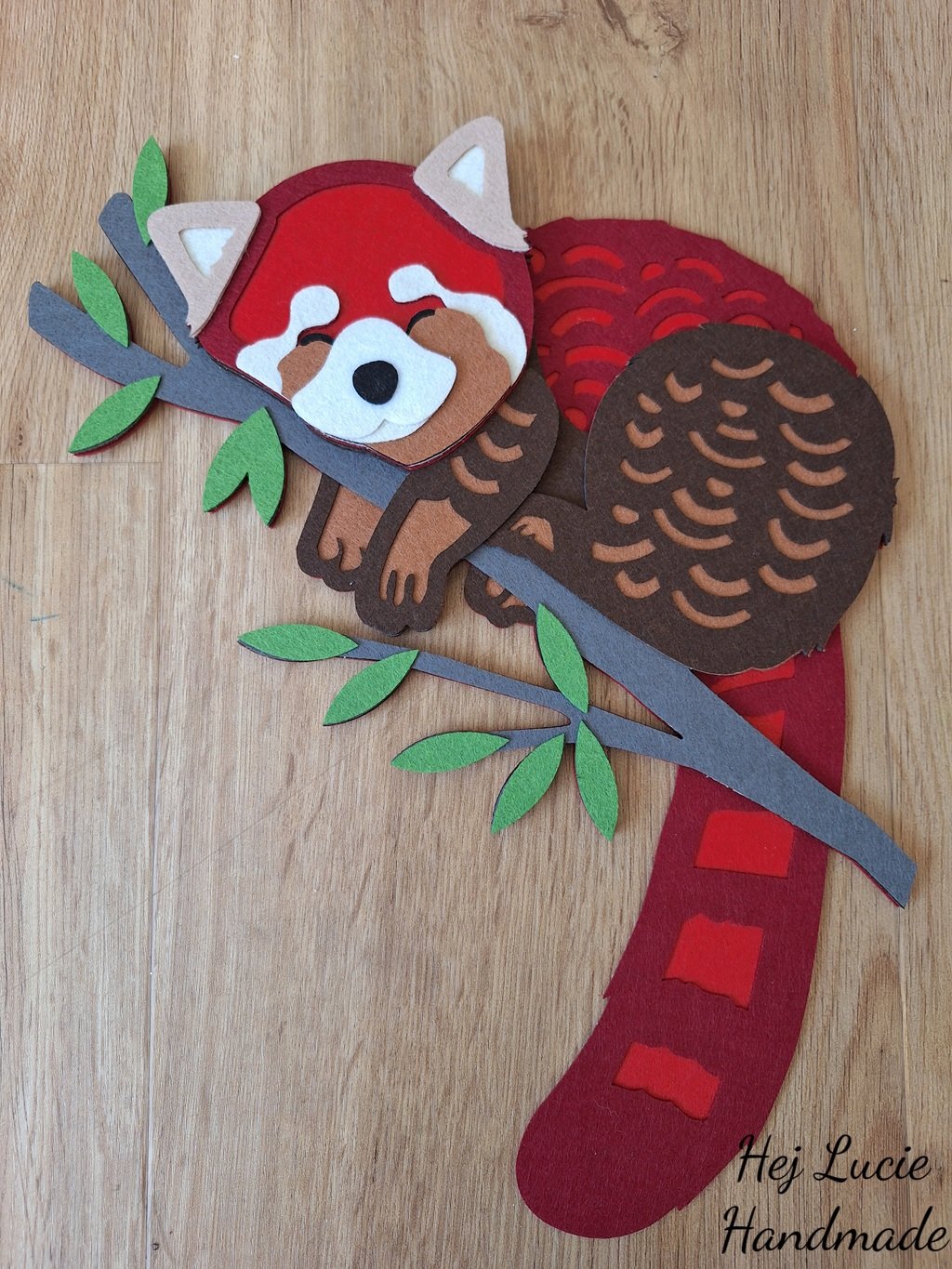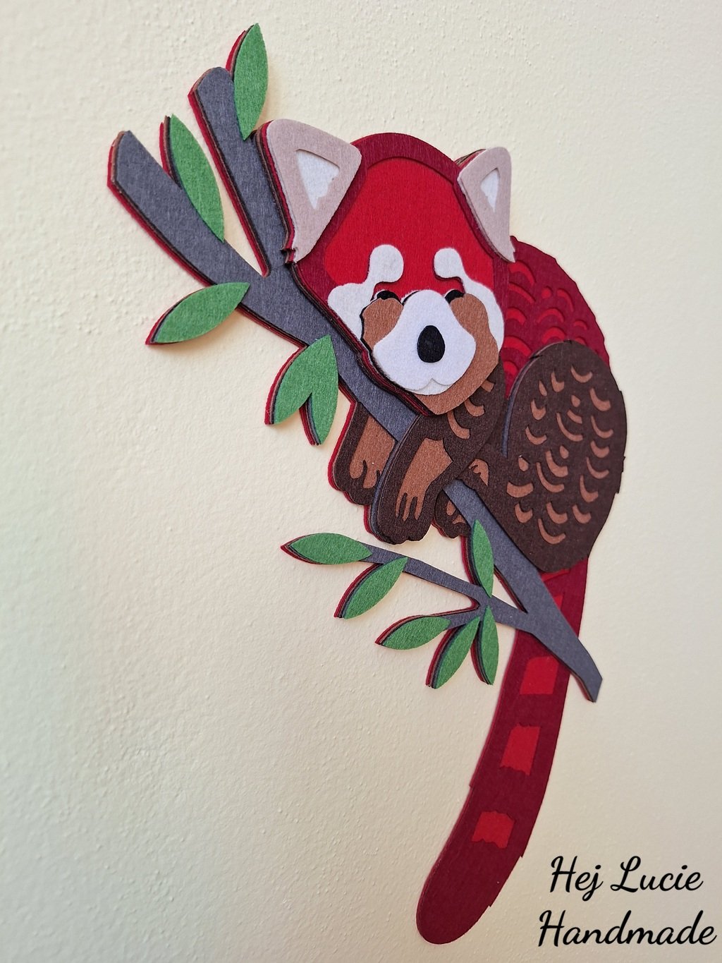 Panda je ručně vyrobená z několika vrstev filcu nalepených na sobě, což působí 3D dojmem. Panda je opatřena poutkem na zavěšení umístěným na zadní straně, poutko není po zavěšení na zeď viditelné.
